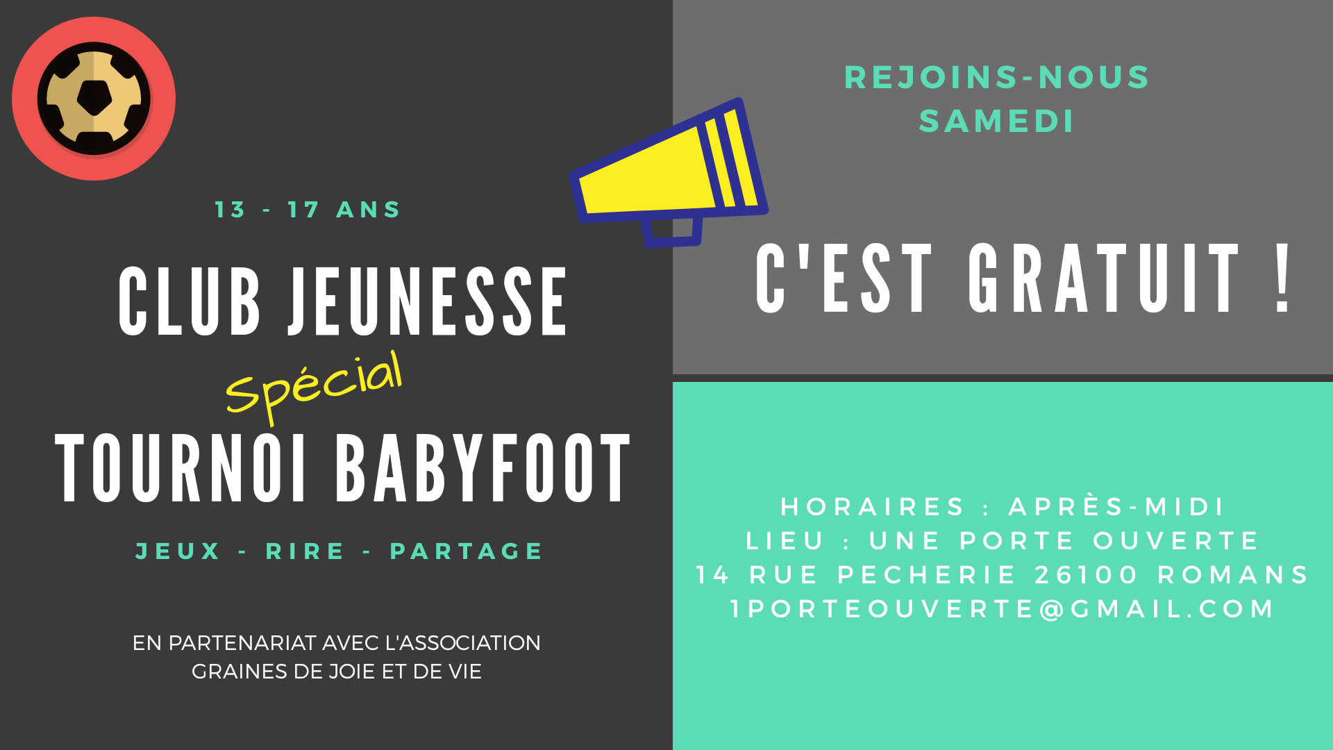 – mercredi 15h30 – 17h30 : club Junior, avec des bricolages, jeux, coup de pouce scolaire, mais aussi réflexions et histoires bibliques adaptées aux enfants